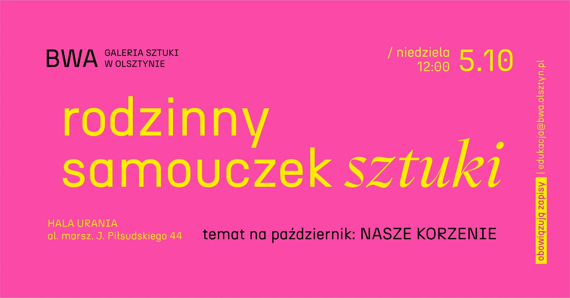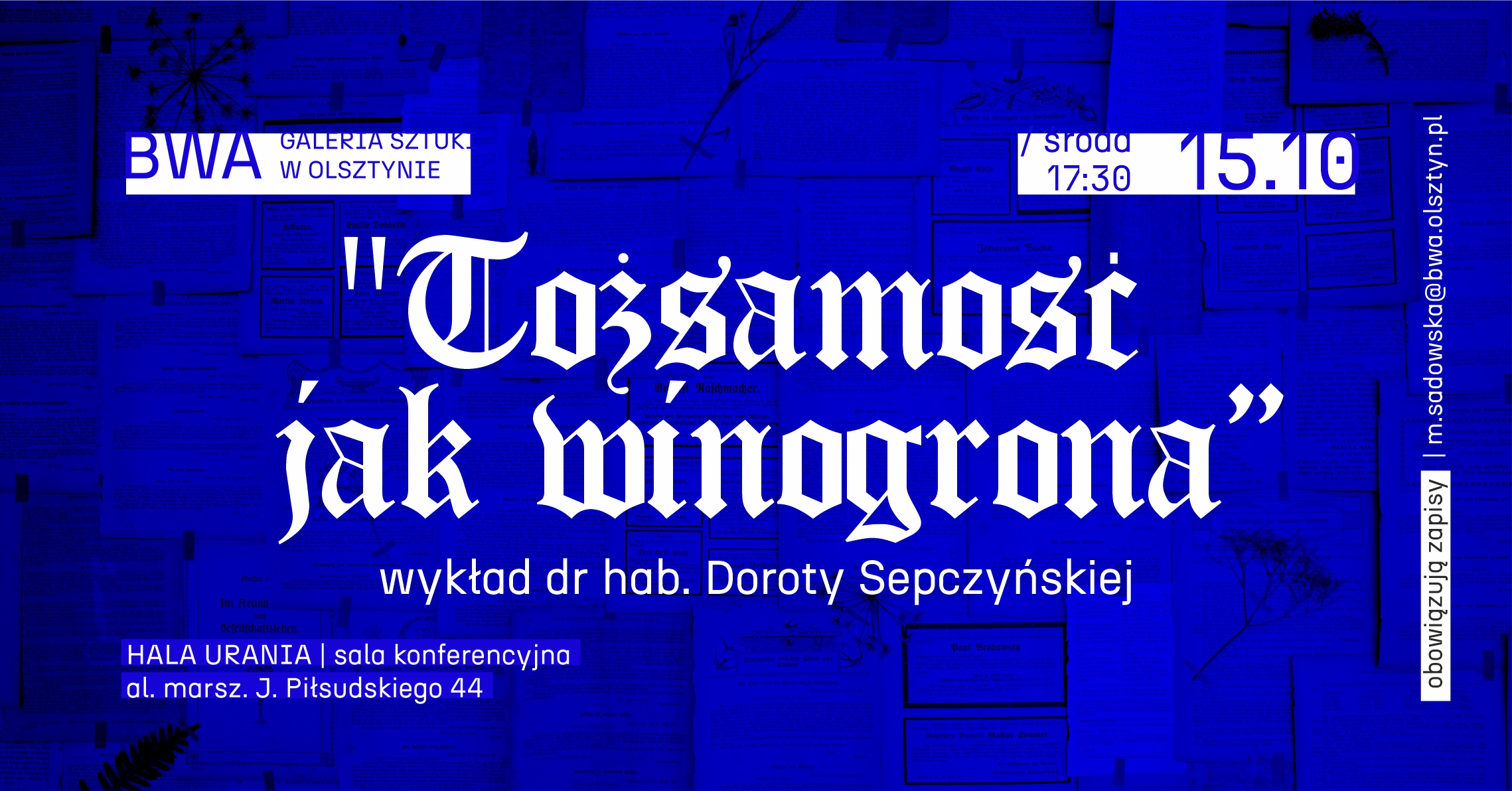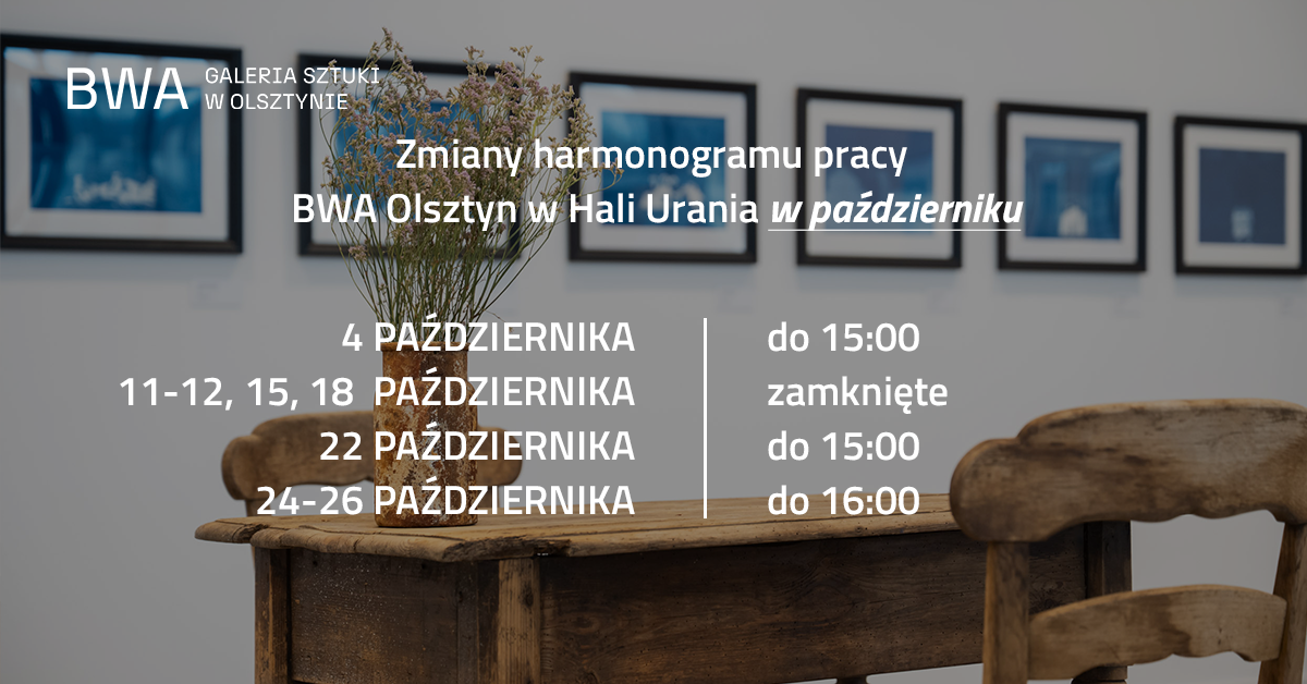 Zobacz więcejBWA Galeria Sztuki w Olsztynie serdecznie zaprasza na wykład dr hab. Doroty Sepczyńskiej, który odbędzie się 15 października (środa) o godz. 17:30 w siedzibie tymczasowej BWA w Hali Urania – al. Marsz. J. Piłsudskiego 44. [...]