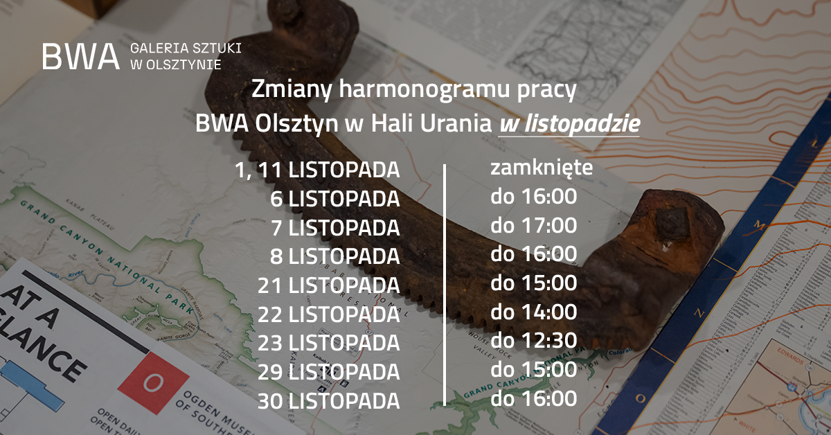 Zobacz więcejSerdecznie zapraszamy na oprowadzanie z Moniką Sadowską kuratorką wystawy "Mapy utraconego krajobrazu" 16 listopada (niedziela) o godz. 12:30 w tymczasowej lokalizacji galerii – HALA URANIA, al. Marsz. J. Piłsudskiego 44. [...]