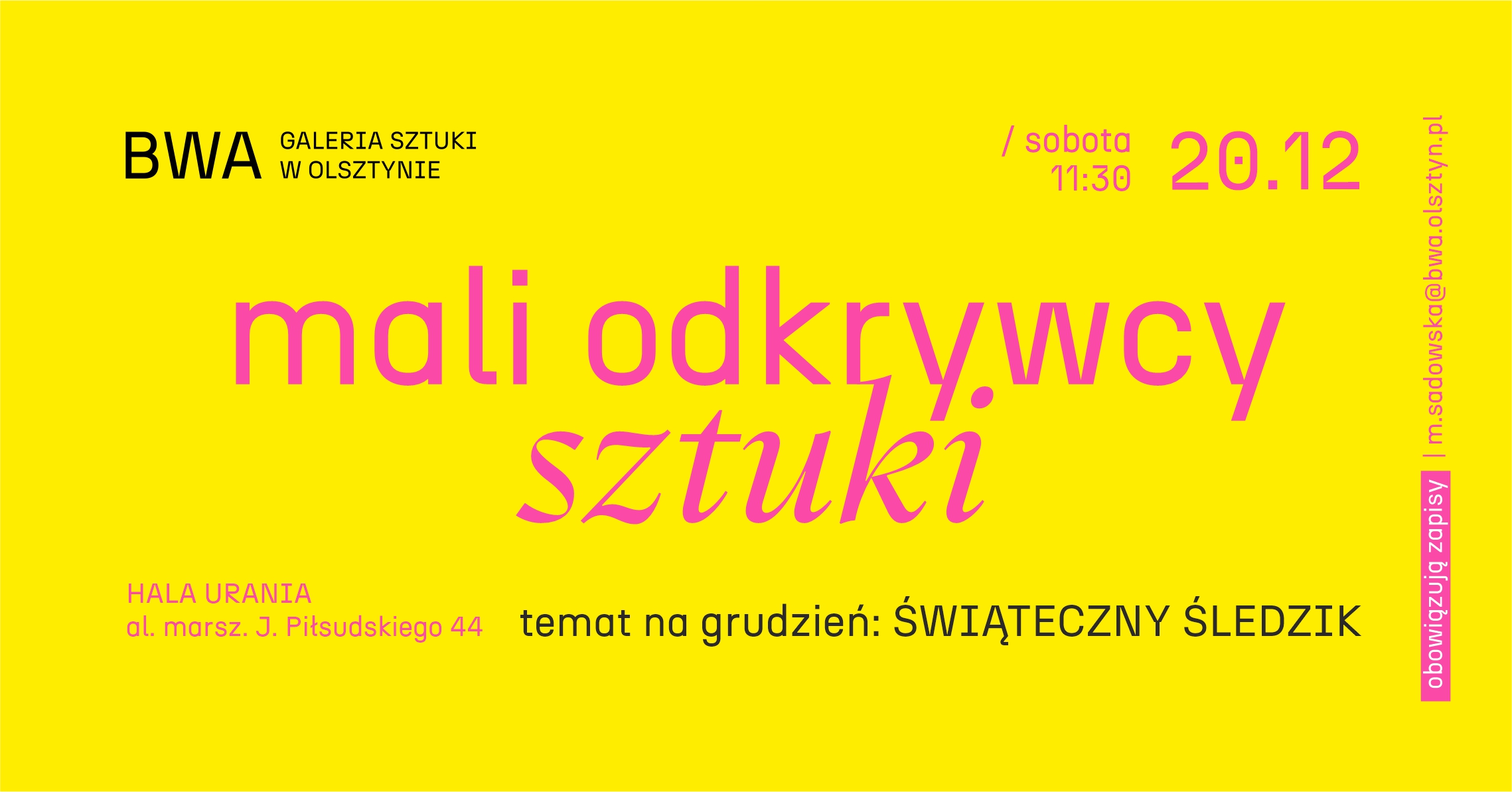 BWA Galeria Sztuki w Olsztynie serdecznie zaprasza na spotkanie z cyklu "Środa dla seniora", które odbędzie się 29 stycznia (środa) o godz. 17:30 w siedzibie galerii – Piłsudskiego 38A, Olsztyn.