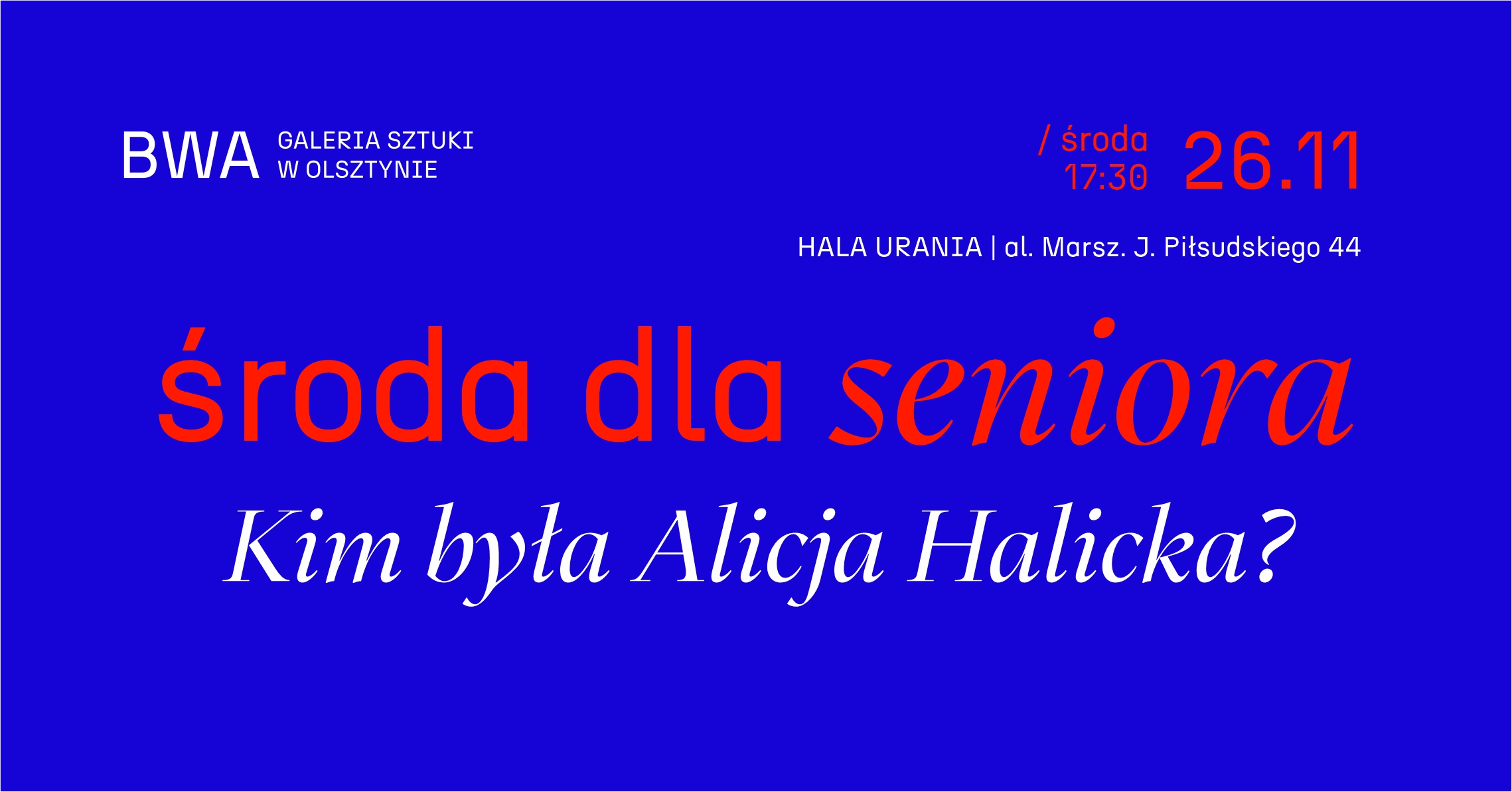 Zobacz więcejBWA Galeria Sztuki w Olsztynie serdecznie zaprasza na spotkanie z cyklu "Środa dla seniora", które odbędzie się 26 listopada (środa) o godz. 17:30 w siedzibie tymczasowej BWA w Hali Urania – al. Marsz. J. Piłsudskiego 44 (wejście B1 | sala konferencyjna). [...]