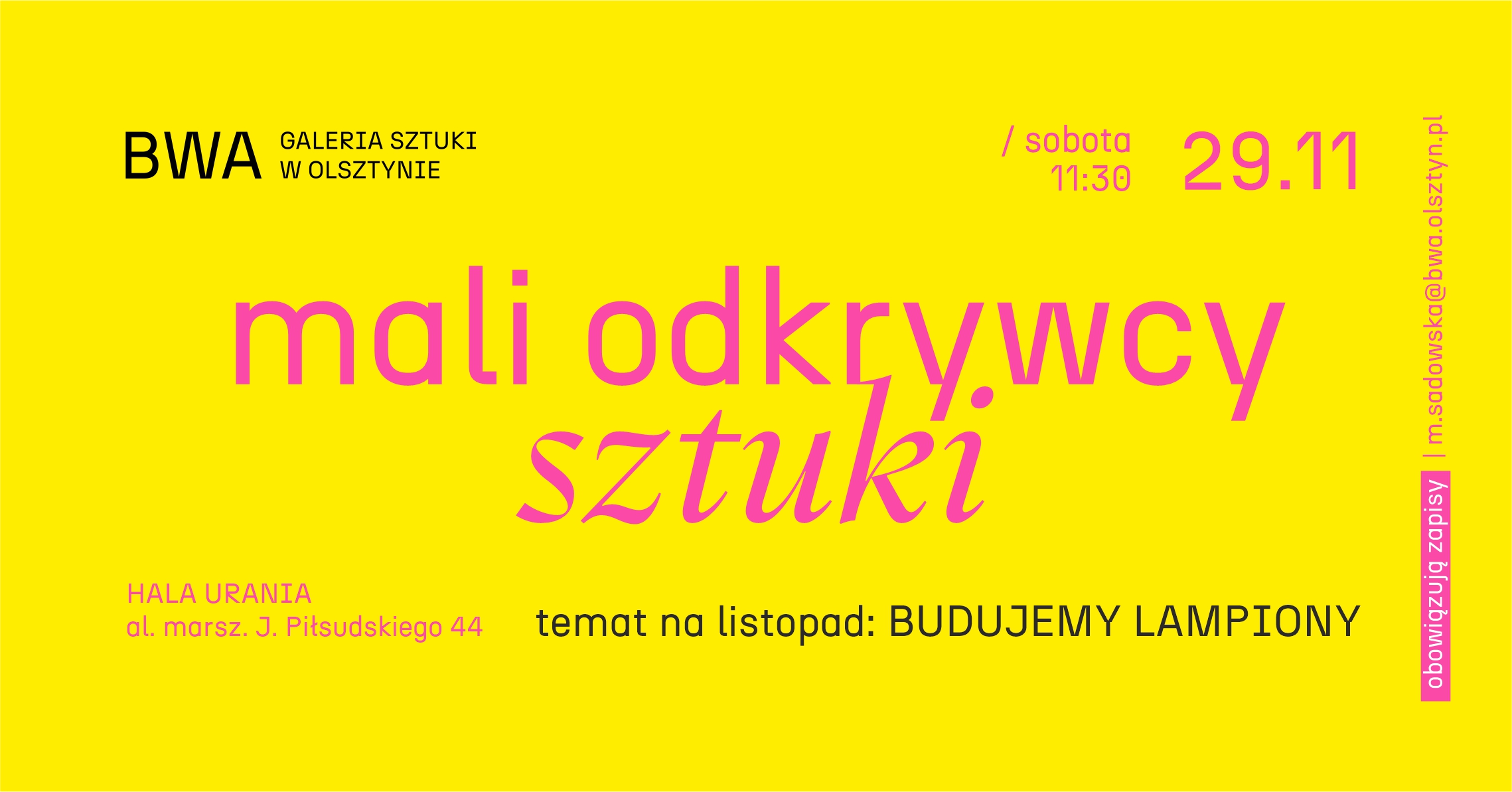 Serdecznie zapraszamy na spotkanie z cyklu "Mali odkrywcy sztuki", które odbędzie się 29 listopada (sobota) o godz. 11:30. [...]
