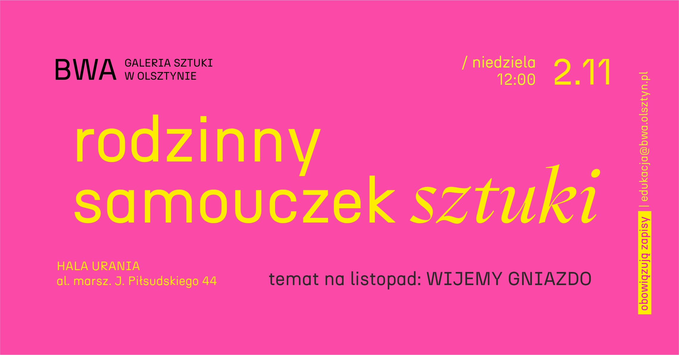 Galeria Sztuki BWA w Olsztynie serdecznie zaprasza rodziców, dziadków oraz opiekunów wraz z pociechami na niedzielne rodzinne warsztaty plastyczne. [...]
